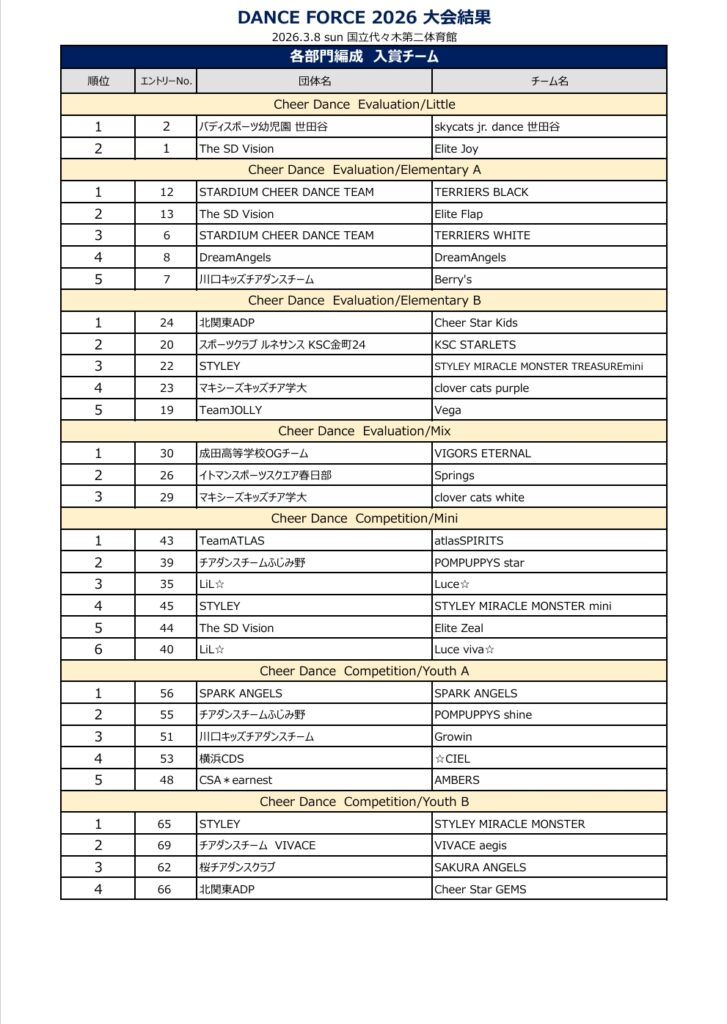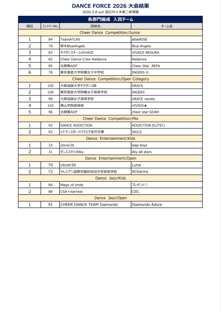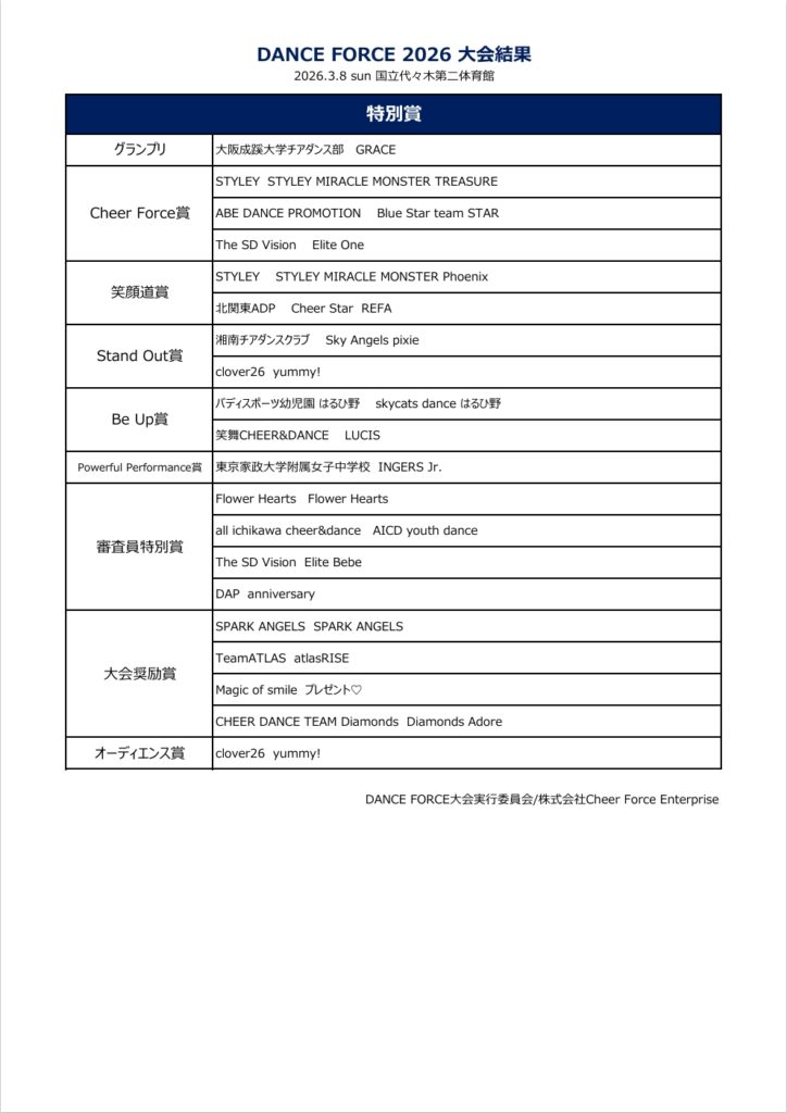 DANCE FORCE ALL JAPAN DANCE CHEER COMPETITION 2026
